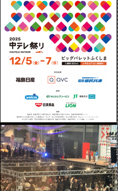 12月5日~7日・郡山市ビックパレット福島に於いて、2025・中テレ祭りが開催され、我々グリーセスも協賛させていただき、警備面でもお世話になりました。今年も例年同様、駐車場も満員御礼・多くの来場者で賑わいました!